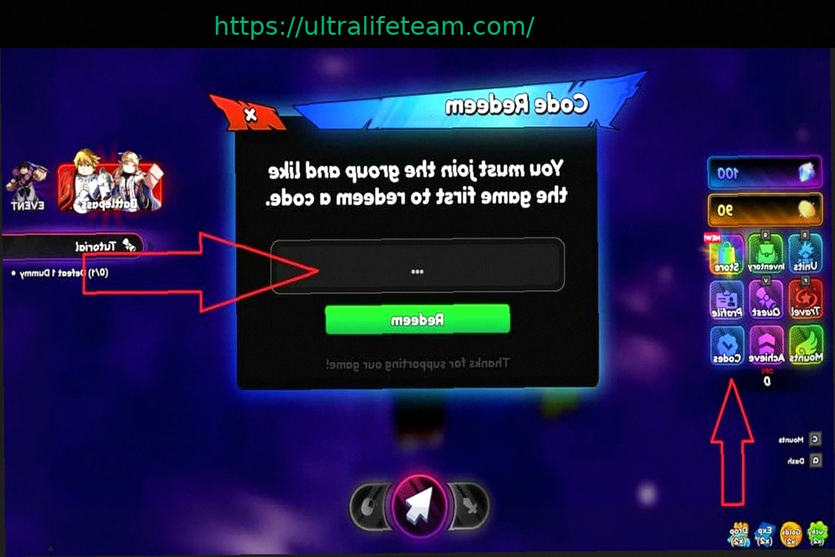 Canjear códigos en Anime Tactical Simulator es un proceso rápido, pero primero deberás unirte al grupo de la comunidad del juego para activar la función. Una vez hecho esto, acceder al menú de canje de códigos es sencillo siguiendo estos pasos: