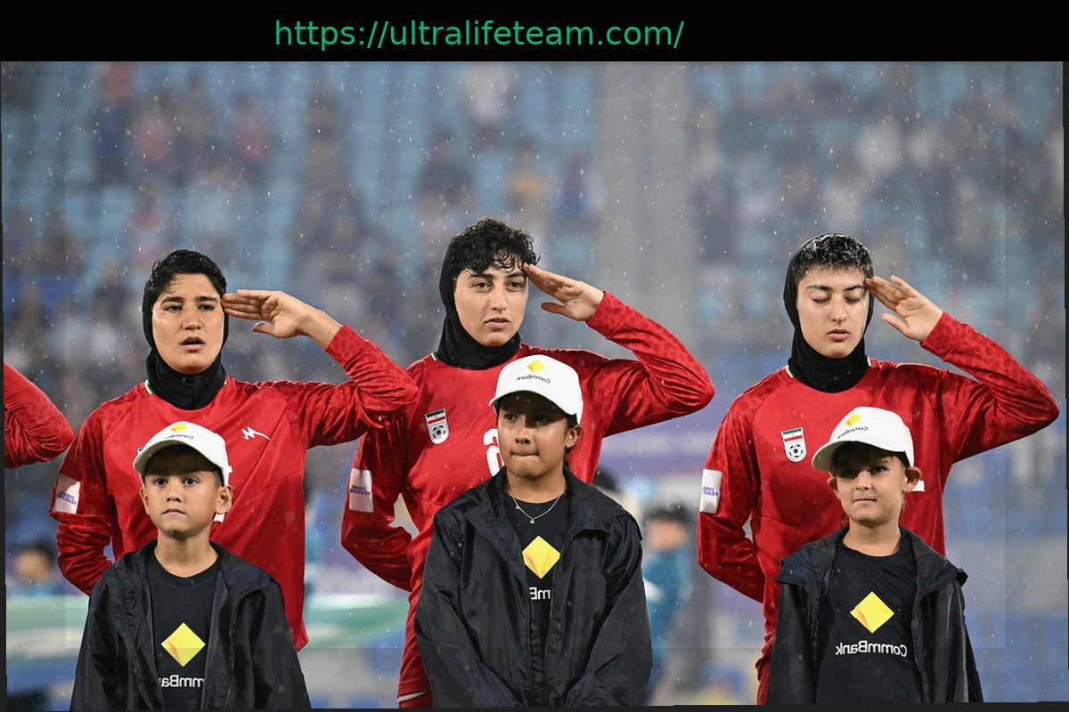 Las jugadoras iraníes rindieron homenaje durante su himno nacional en el partido del Grupo A de la Copa Asiática Femenina entre Irán y Filipinas, que se celebró en Australia el 8 de marzo de 2026.